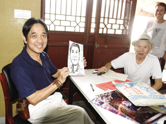 “像,真的挺像。”昨天(9月6日)上午10时许,义乌农民画代表人物叶洪桐来到华川书舍,为台湾摄影师吴秉益画了两幅肖像画。肖像画创作完成之后,叶洪桐在上面写上“两岸一家亲,新的义乌人”。叶洪桐告诉记者,前天上午,他看了吴秉益的摄影展《第二故乡》后,非常有想法,他刚好有一些台湾题材的农民画,所以专程过来交流一下。吴秉益则表示,希望两人以后可以加强合作,为两人以后可以加强合作,为两岸交流多做些事情。