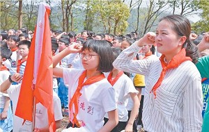 图为市关工委、教育局组织苏溪一小师生400余人,在齐庐山革命烈士陵园举行庄重简朴的清明节传递火炬祭扫英烈活动。