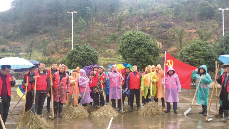 党员志愿服务队在村子里打扫卫生。