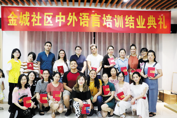 昨天记者从义乌市后宅街道金城社区党委了解到,有两批特殊的学员迎来了结业仪式。其中一批来自义新欧沿线国家巴拿马、西班牙、哥伦比亚等国的外籍人员,社区为他们提供了免费的汉语培训。他们在接受培训的同时,也为社区另一批有需要的中国居民提供西班牙语教学。在中外学员互帮互助的美好氛围中,两批学员圆满结业。