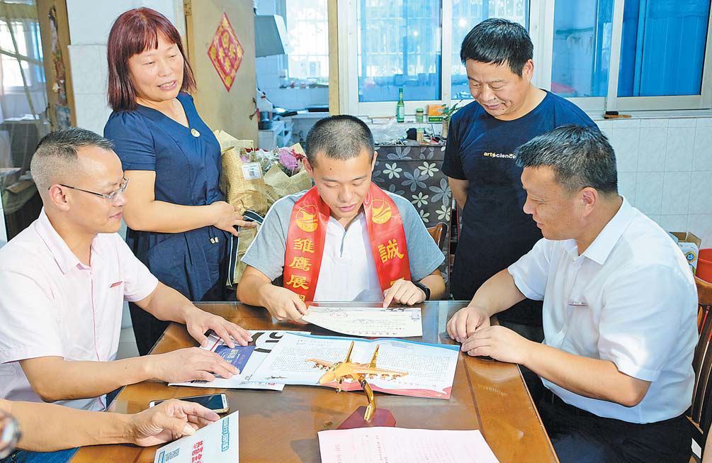 中国义乌网7月19日讯(商报记者 吕斌 实习生 童舟)昨日(7月18日)上午,义乌市第一位海军招飞录取的学子王嘉成在家里收到录取通知书。