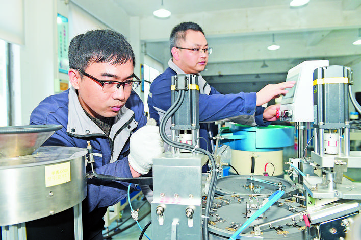 日前,记者在义乌市给力自动化科技有限公司看到,工作人员正在安装调试各种自动化设备。《条例》的实施使得公司产能翻倍、订单不断,生产出更多产品满足市场需求。