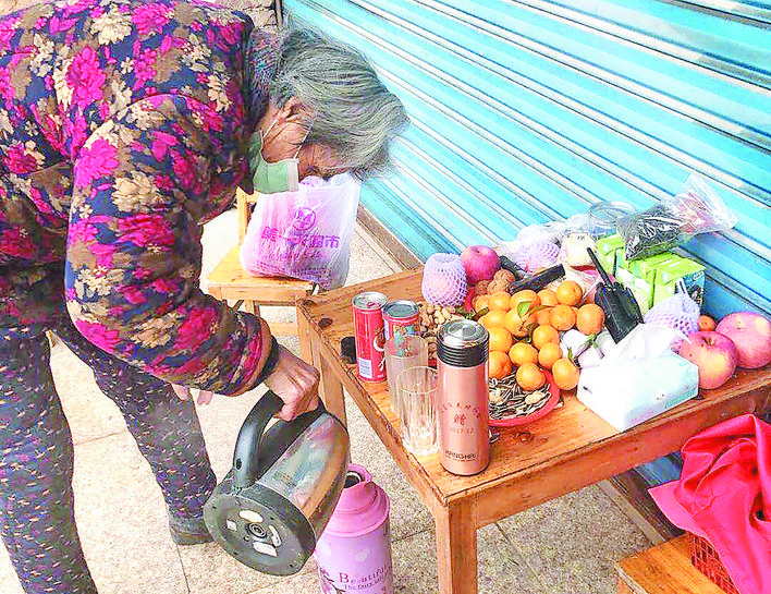老人叫麻月英,今年78岁,在上西陶村生活了30多年。麻奶奶家附近有一处居家医学留观点,连续14天,老人起床就开始为值守人员张罗着小方桌上的“爱心果盘”,每隔三四个小时就为值守人员送一壶开水。“这些天阴晴不定,尤其是晚上气温下降,喝点热水值守人员身体会暖和些。”麻奶奶说。