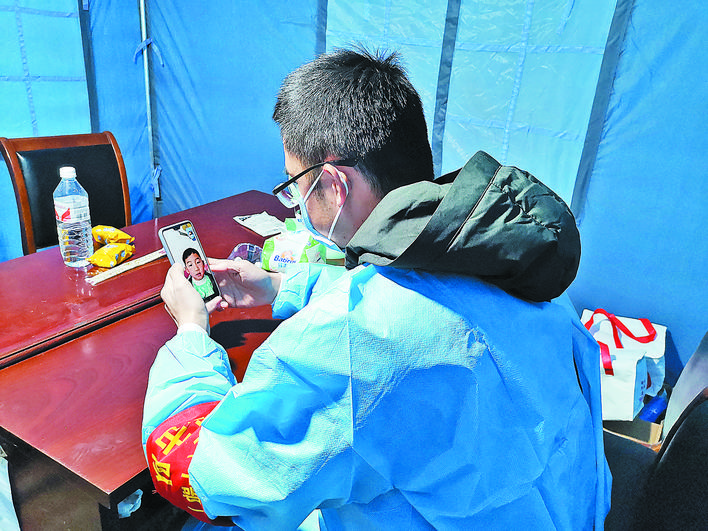 他们是抗疫战士,也是别人的儿女、父母……夜里的工作间隙,他们只能拿出手机与家人视频联系。“舍小家、顾大家”是他们常说的一句话,家中亲人的鼓励与支持,也是他们坚守一线的精神力量。