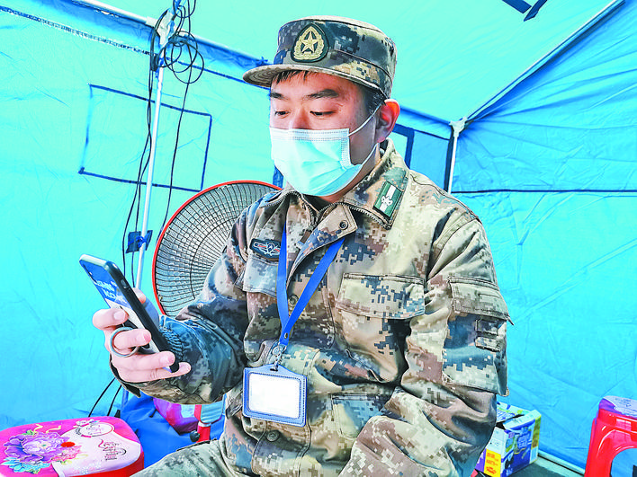 作为赤岸镇人武部副部长,王超群需要管辖镇辖区内所有设卡点,凌晨遇到突发情况要及时赶到。为此,他已经十多天没有回家了。办公室的沙发就是他的床,盒饭就是他今年的“年味”。
