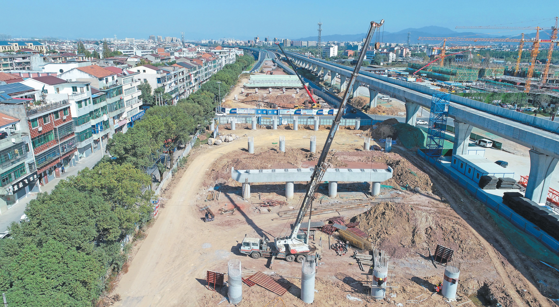 11月10日,03省道义乌段改建工程二期1标段,市交旅集团及施工方正在义亭高架桥区进行路基换填、立柱施工等。截至目前,该工程已累计完成合同价的14.6%,各项工作稳步推进。