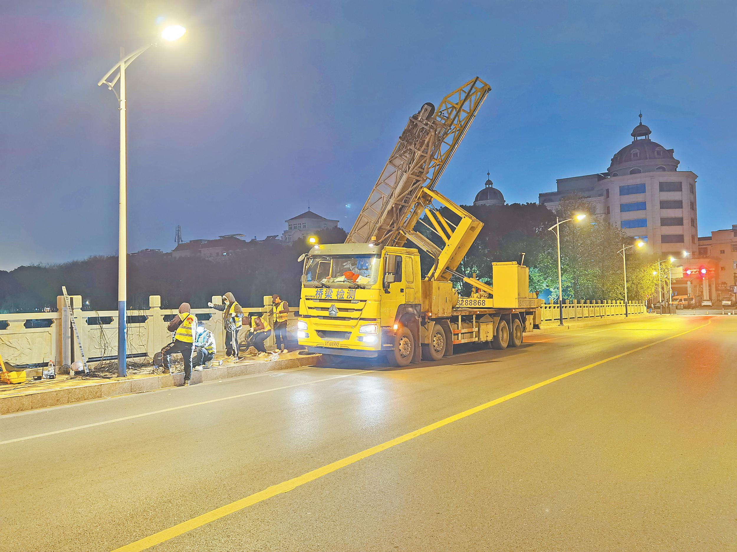 为全面掌握城区桥梁运行状况,排查安全隐患,做好应急防护,连日来,建设局市政处组织相关人员开展城市桥梁运行安全检查,对城市桥梁定期检测。