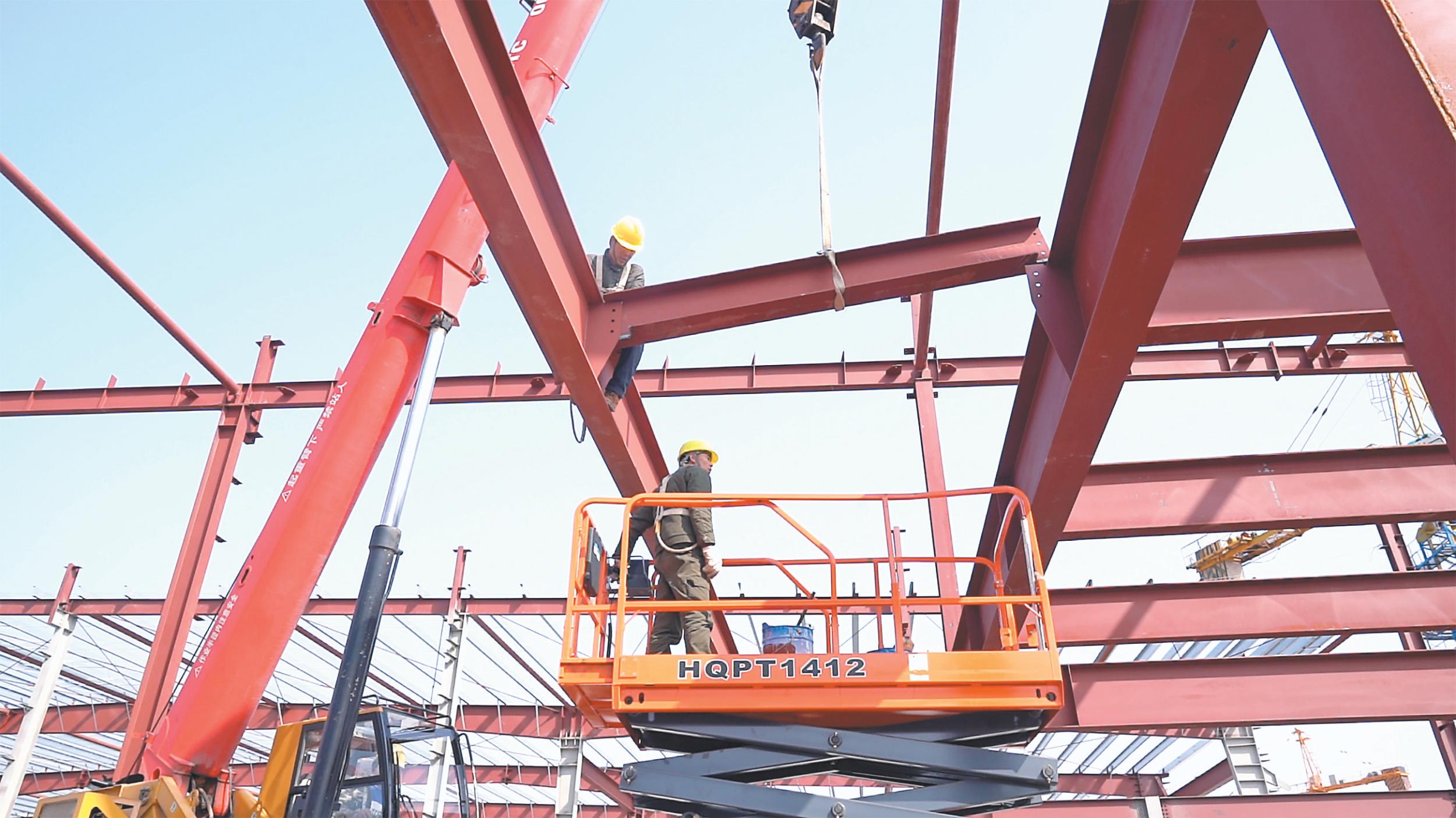 3月4日,义乌市重大招商项目之一的京东义乌电商产业园施工现场,500余名工人正赶趁春光,加班加点抢工期,确保9月底主体建筑以及地库、附属配套用房等竣工验收,进入移交阶段。
