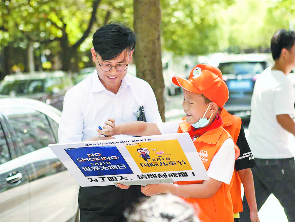 “我负责拿手举牌,你负责捡烟蒂,他负责烟蒂换糖。”小朋友们明确分工团结协作,认真寻找丢在地上的烟头。活动当天,孩子们不仅是捡拾烟蒂的小小志愿者,还成了劝烟的“社区小当家”。“叔叔,我用一颗糖换您一支烟,可以吗?”这是“社区小当家”们说的频率最多的话语。当公园里、大路上响起稚嫩而又童真的声音,一些正在吸烟的居民主动掐灭了手中的香烟,有的人则捡起了刚刚随手丢在地上的烟蒂,放进孩子们的烟头收集桶里。