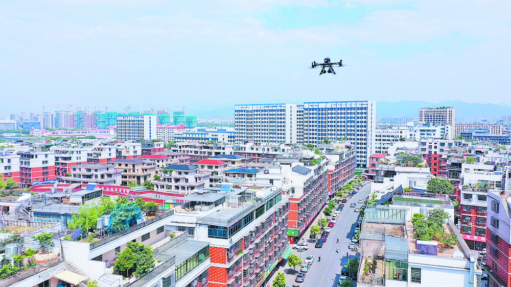 昨日,在稠江街道后申塘上空,一架悬挂着高空喊话器的警用无人机开展巡查飞行,通过空中喊话宣传“只进不出、人不出区、严禁集聚”的管控措施,并提醒群众戴好口罩、保持社交距离、有序排队开展核酸检测。