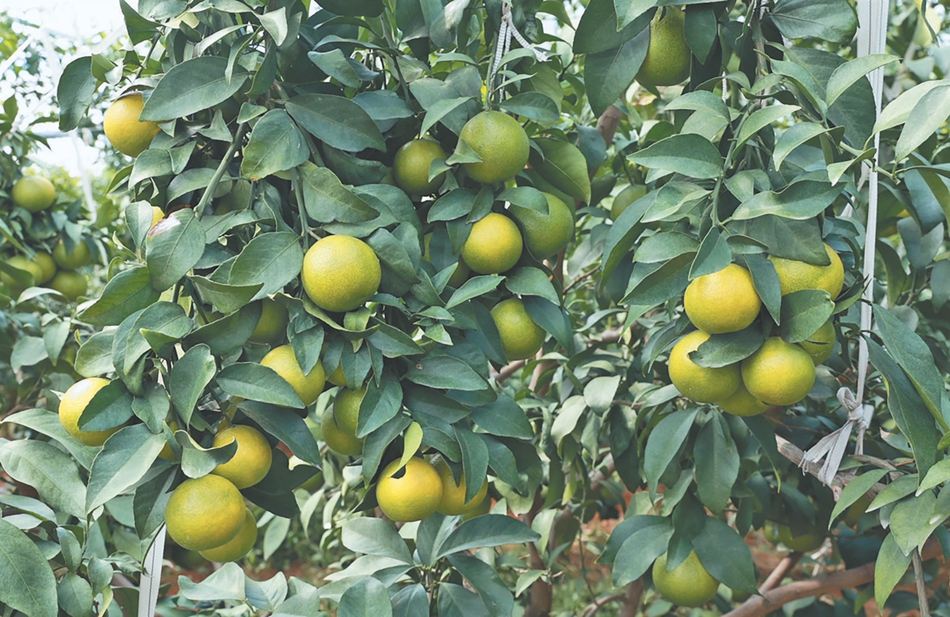 与常见的橘黄色果实不同,记者在现场观察到,目前枝头上的“红美人”果皮呈现出独特的青中带黄色泽,显得格外鲜嫩。