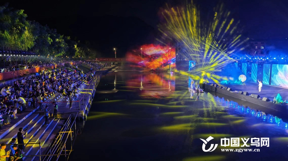 中国义乌网10月2日讯 (记者 蒋守洋 编辑 刘蓉) 10月1日晚,义乌市惊喜大陈·礼赞国庆——2025水上奇妙夜”文艺晚会震撼启幕。大陈江红旗村丁店段江畔,灯光与江波交织成流动的画布。全息水幕映射出星光与波纹,对岸挤满了期待已久的观众。灯光秀如星河倾泻,舞者的锦绣舞姿在水面倒映,古筝、琵琶、二胡等传统乐器与电子音效巧妙融合,为观众带来一场沉浸式的视听盛宴。