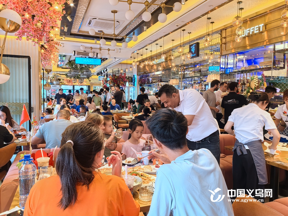 逛完商贸城,再品尝地道异国风味,成为众多游客的必选项目。9月30日启幕的“义乌好好逛”全球吃货节,以“1+4+N”模式联动400多家外资餐厅,土耳其沙威玛、越南春卷、意大利恰巴塔等美食香气满溢,叙利亚摊主阿米尔的烤架上的美食多次售罄。作为世界客商云集之地,义乌的异域美食早已遍地开花,漫步在宾王国际商圈、南山里国际风情街、悦桂坊街区、义乌天地,中东餐厅、印度料理、韩式风味随处可见,堪称“舌尖上的一千零一夜”。假期里,多家中东菜餐厅人气爆表,单日最高翻台近10次,更有游客为尝鲜甘愿排队超5小时,尽显“万国美食之都”魅力。