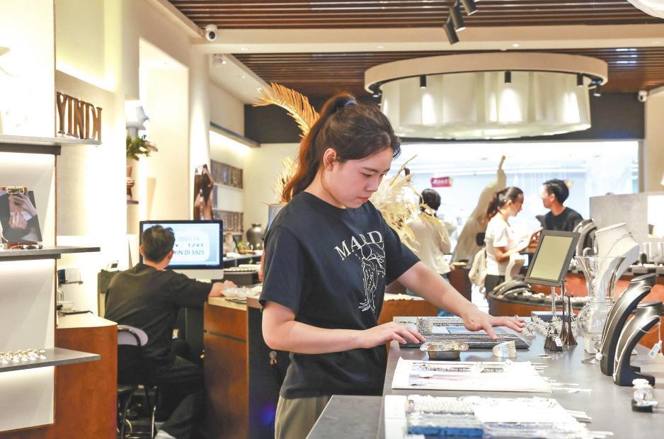 另一边,时尚珠宝区块的经营户方志建刚整理完店内的各类饰品。“我们店里有1500多款产品,所有产品信息我早就烂熟于心,就等开市迎客、开门售卖了!”方志建难掩兴奋地说。