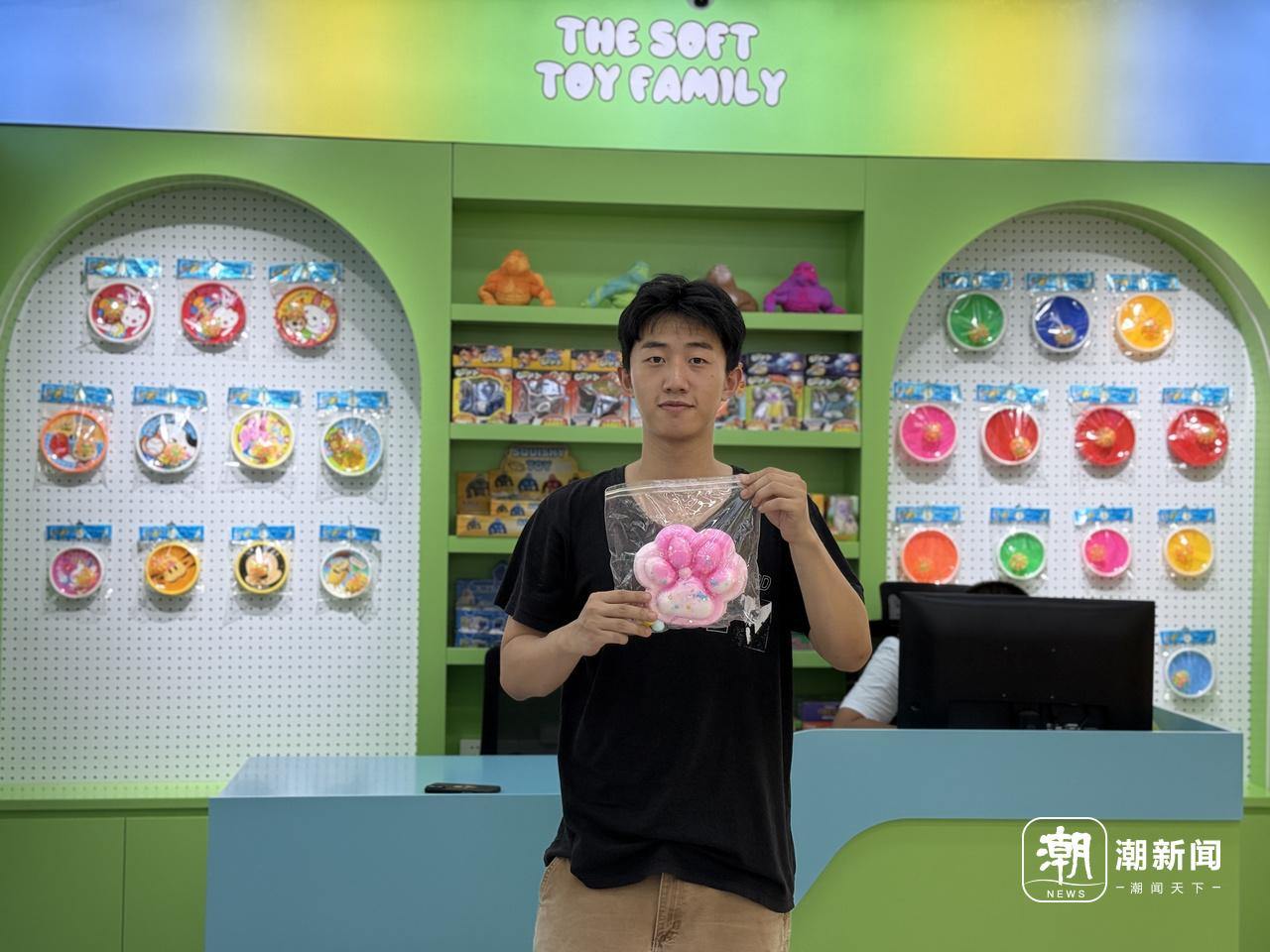 吴飞洋的父辈在义乌市场经营软胶、解压玩具已经20多年。今年春节后,吴飞洋开始参与到家里的玩具生意。7月,他在新市场竞得一间商铺,创立新品牌“软玩世家”,很快组建起视频拍摄与跨境直播团队。
