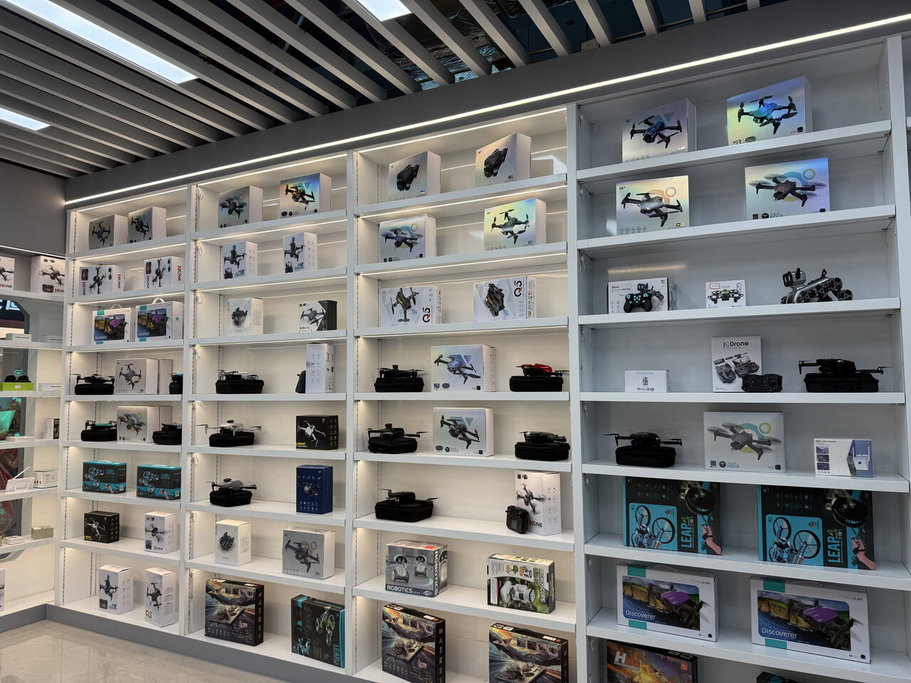 郭文健的店铺内陈列着无人机等智能设备 记者 陈雷 摄