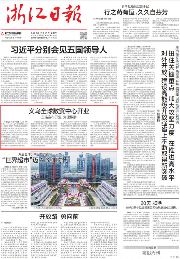 14日上午,义乌全球数贸中心开业,这是全省提升开放能级、做强数字贸易的重大标志性工程,充分彰显了义乌速度、义乌创造、义乌活力、义乌信心,将为推进高水平对外开放、建设高能级开放强省,加快打造国内国际双循环战略枢纽注入强劲动能。