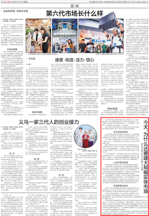 “大批量采购,尤其是国际贸易,不到店铺里逛逛,实地感受一番,怎么放心?”多年从事眼镜行业的经营户罗小林感慨,“我们需要的,是如何让实体市场更智能。”这也成了义乌商户的普遍需求。义乌市场发展研究院执行院长黄晓英说,只有数字效率与实体温度相结合,才能为全球客商创造无缝衔接、超乎预期的完美体验。