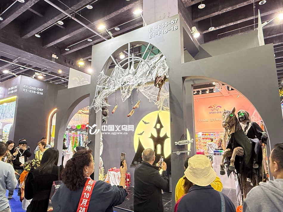 “So cool!”在浙江麟动科技公司的展位外,几个活灵活现的万圣节主题人偶不时随音律舞动,引得国内外客商阵阵惊呼。该公司外贸经理刘嵩告诉记者,他们主营万圣节、圣诞节等国外节庆用品和派对产品,这是公司首次参加义博会。近年来,该公司已在欧洲、南美等地区取得了一定市场份额,但想要进一步拓展新兴市场,刘嵩将目光聚焦在了义乌,“我们陆续将欧洲的仓储都搬回了义乌。一个很简单的道理,在欧洲囤货只能卖欧洲,但在义乌,可以卖全球。”