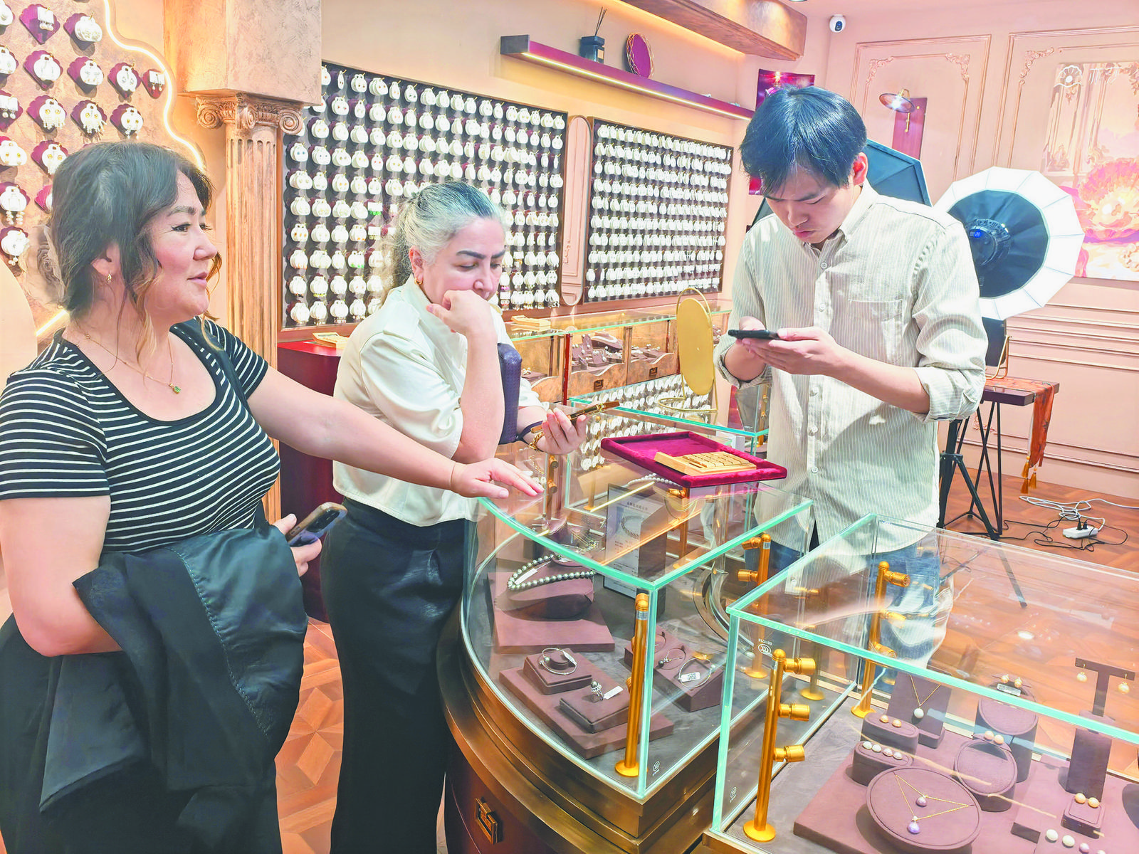 “每天有好多客人拿着社交平台里的笔记来店里找同款。”在义乌全球数贸中心“银际”饰品商铺,经营户一边整理货架,一边笑着说。记者看到,一颗饱满的淡水珠被银质几何边框包裹,链条衔接处的卷草纹暗合传统锻錾技艺。一旁展示的“喜上眉梢”指环,将喜鹊登梅的经典纹样与满钻镶嵌桥面结合,既有中式意趣又不失轻奢质感,让传统银饰摇身变成了“可佩戴的美学宣言”。一位伊拉克采购商在店里下了价值200万元的订单,客户看中的正是将珍珠与潮流审美结合的定制款。