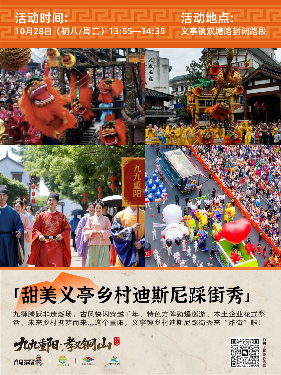 10月27日起,不妨带上家人朋友,来义亭登铜山岩“靠靠山”、赏民俗、叙情谊,在这个重阳,邂逅“甜美义亭”的别样魅力。