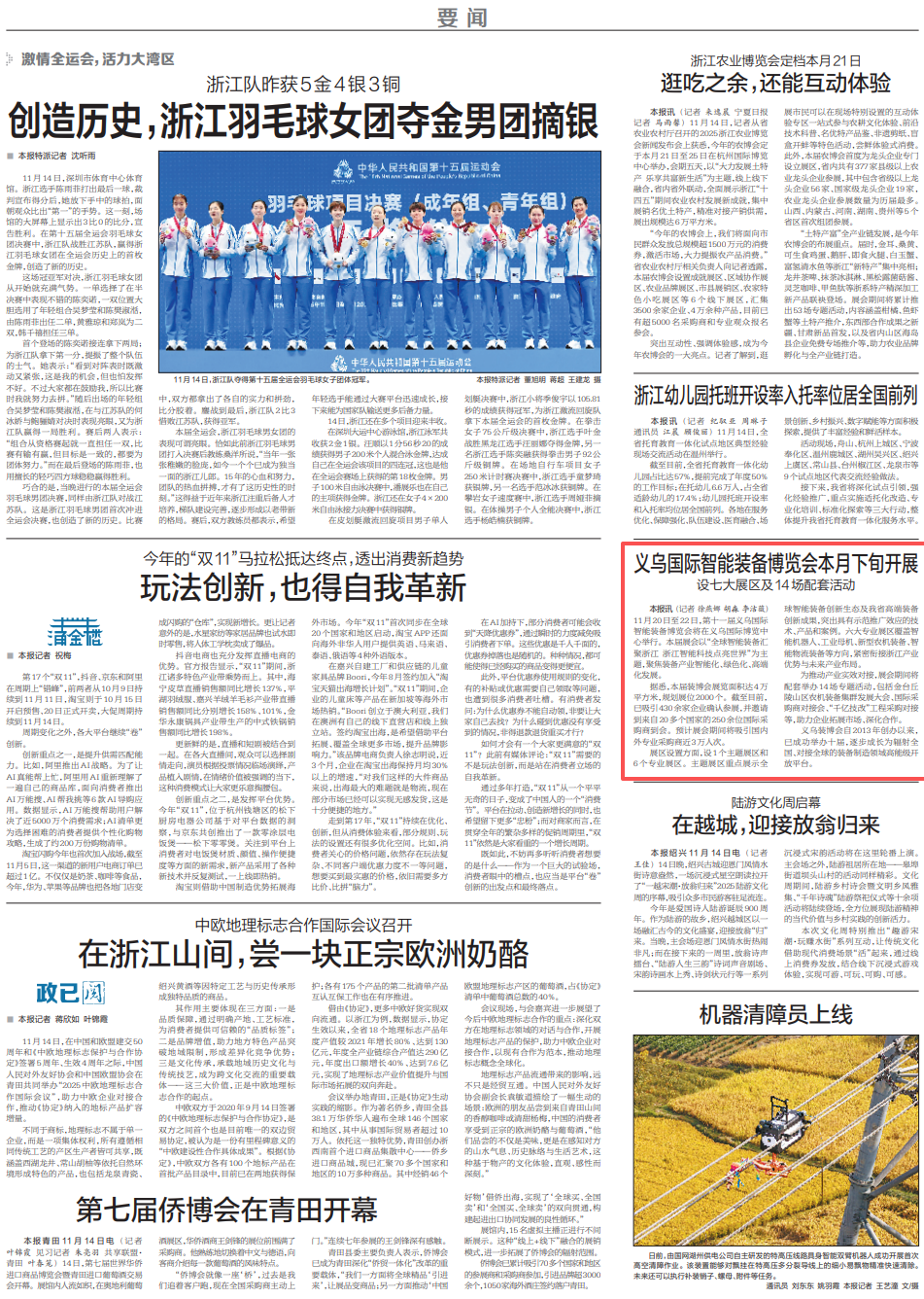 2025年11月15日《浙江日报》3版