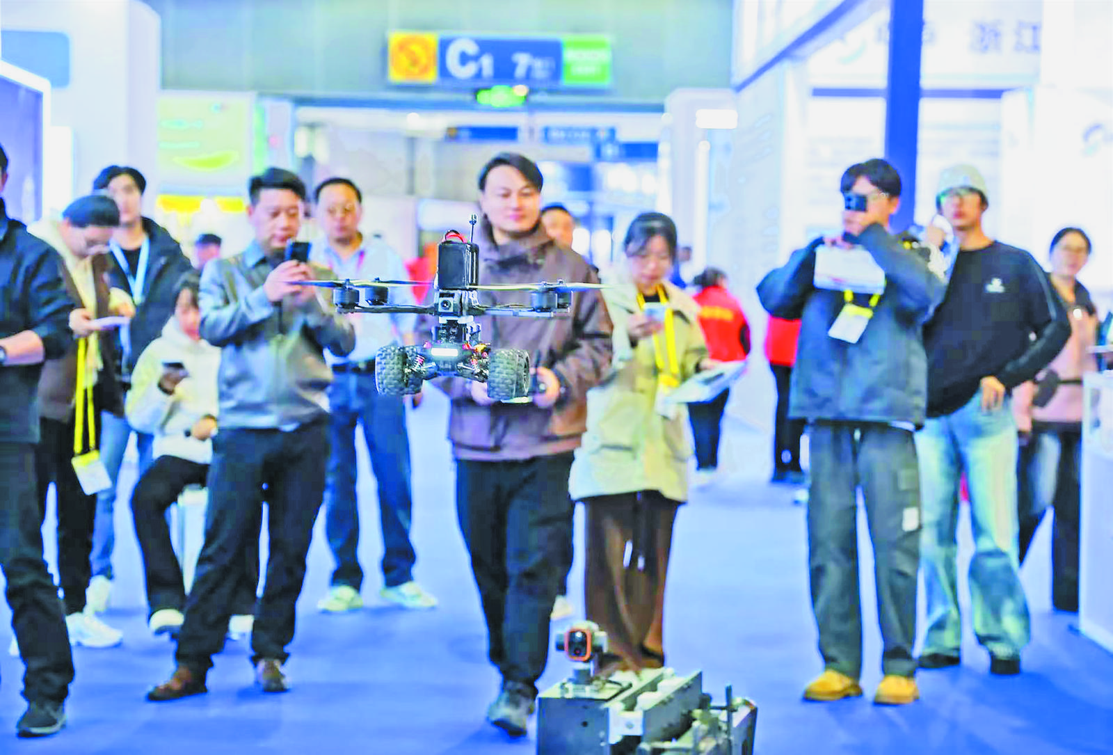 参展商演示新款陆空两用无人机记者龚盈盈摄