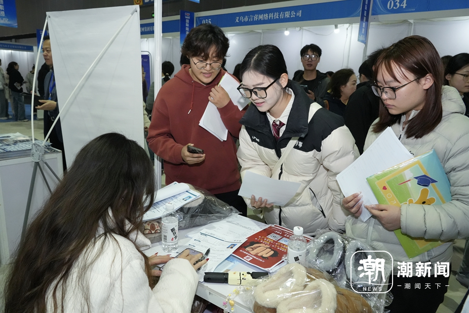 中国义乌网11月25日讯(记者 龚书弘 编辑 童晓)“你的实习经历很不错,很适合我们公司的数字营销岗位。”“我能熟练应用多款AI进行产品设计,打版、建模都没问题。”11月25日,职引未来—2025年全国城市巡回招聘义乌站暨商贸人才交流活动现场人潮如织,来自全国10多个省、市的上万名学生手持精心打磨的简历,不时在企业展位前徘徊驻足,对岗位需求、薪资福利、晋升机制等每一项内容都细致入微地阅读,更对义乌各项人才支持政策进行深入了解。