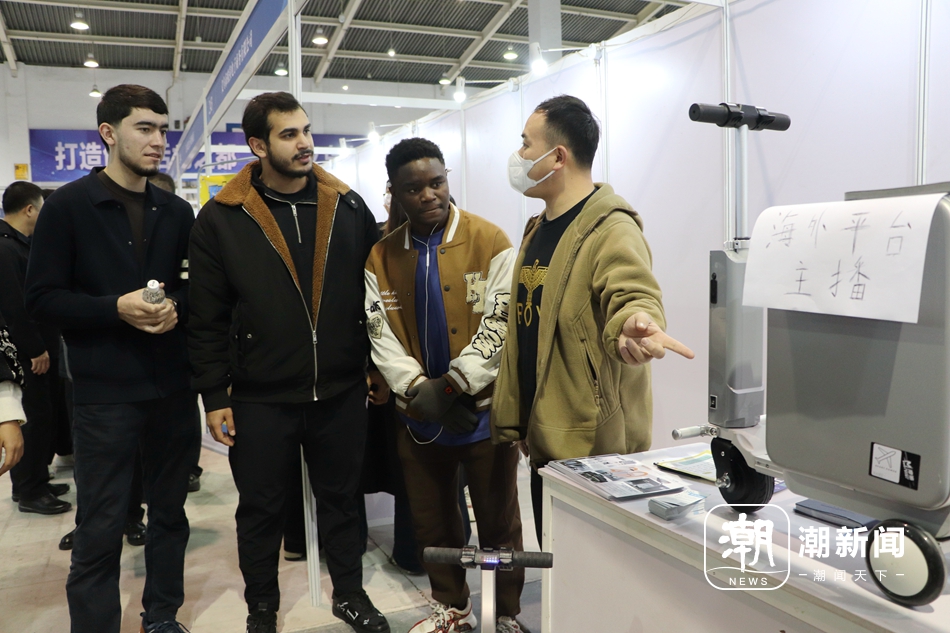 上午,外籍留学生参访团首先来到位于义乌国际博览中心的“职引未来—2025年全国城市巡回招聘义乌站暨商贸人才交流活动”现场,实地感受招聘会的热烈氛围。本次招聘会汇聚企业超500家,涵盖跨境电商、国际物流、数字营销等全链条商贸领域,提供近万个优质岗位,多个岗位突出“留学生优先”“海外运营”等导向。来自喀麦隆的留学生加菲与一家跨境电商企业就海外平台的主播岗位招聘进行了交流,企业负责人胡川表示:“留学生的多语言优势和国际视野正是我们急需的,活动搭建了精准对接的平台,刚才已经收到近30份留学生简历,我们也愿意为来义就业的留学生提供岗位经验扶持。”