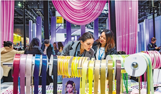 11月25日,在首届中国(浙江)跨境电商进出口交易会上,国外客商在采购商品。通讯员陈业摄