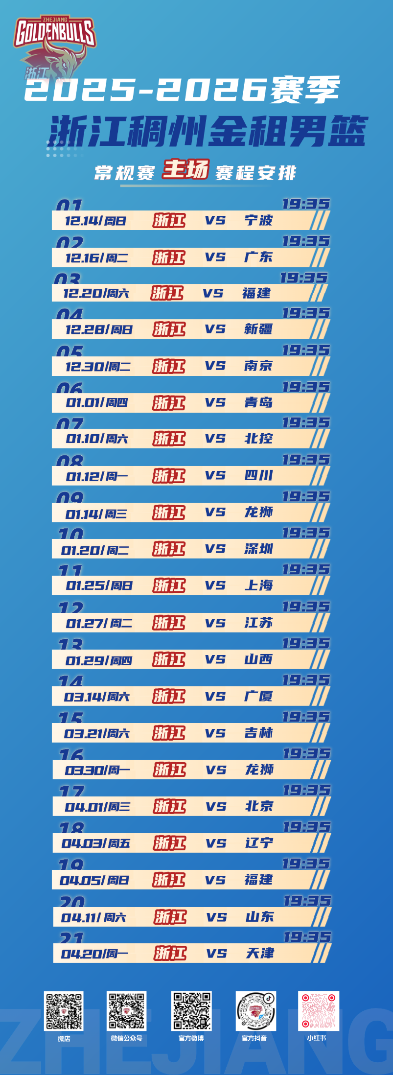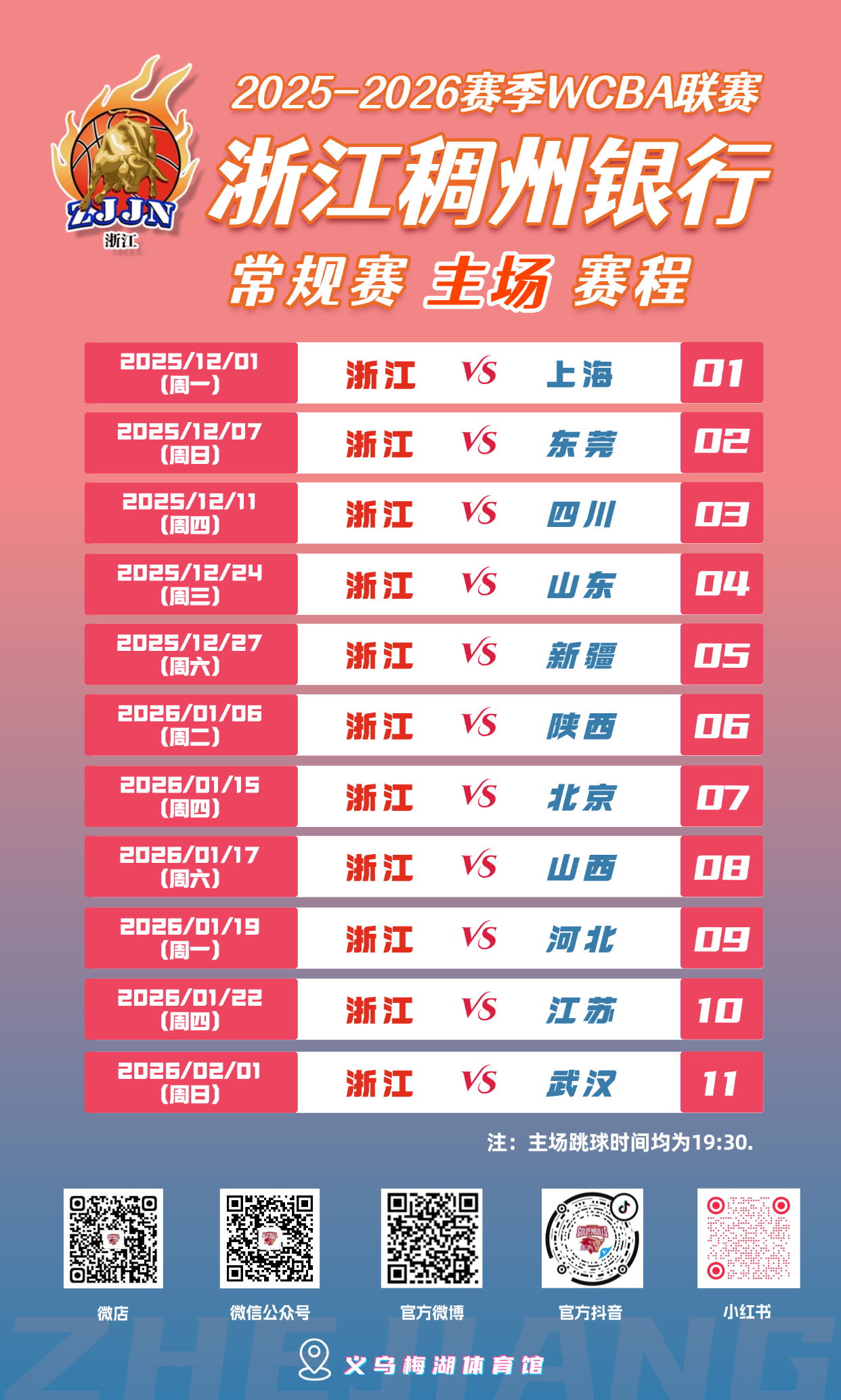 值得关注的是,浙江稠州金租男篮2025-2026赛季CBA主场将重返义乌,与女篮共用一个主场。义乌梅湖篮球馆向来被称为“魔鬼主场”,激情的球迷观众是球队最坚实的后盾和最强大的“第六人”。男篮将于12月14日(周日)在义乌正式开启新赛季的首个主场比赛,女篮则稍早一些,将于12月1日在义乌主场迎战上海。