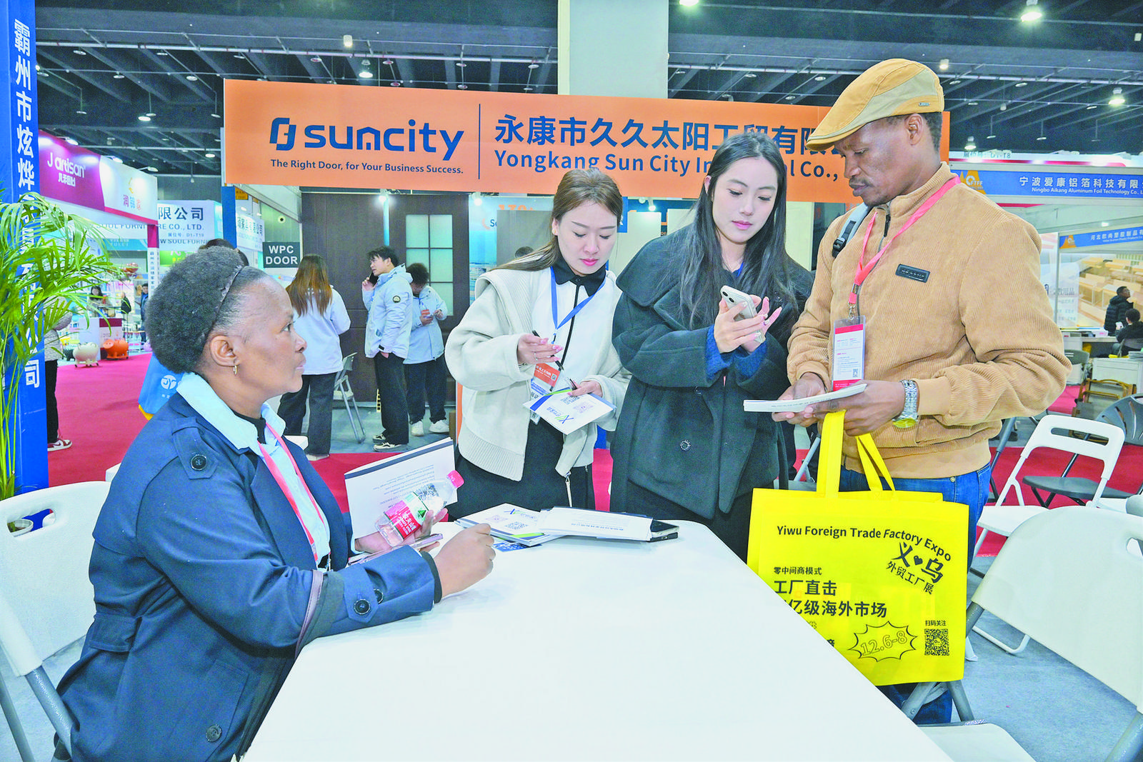 2025中国(义乌)外贸工厂展览会上,来自南非的客商现场订购办公家具产品。