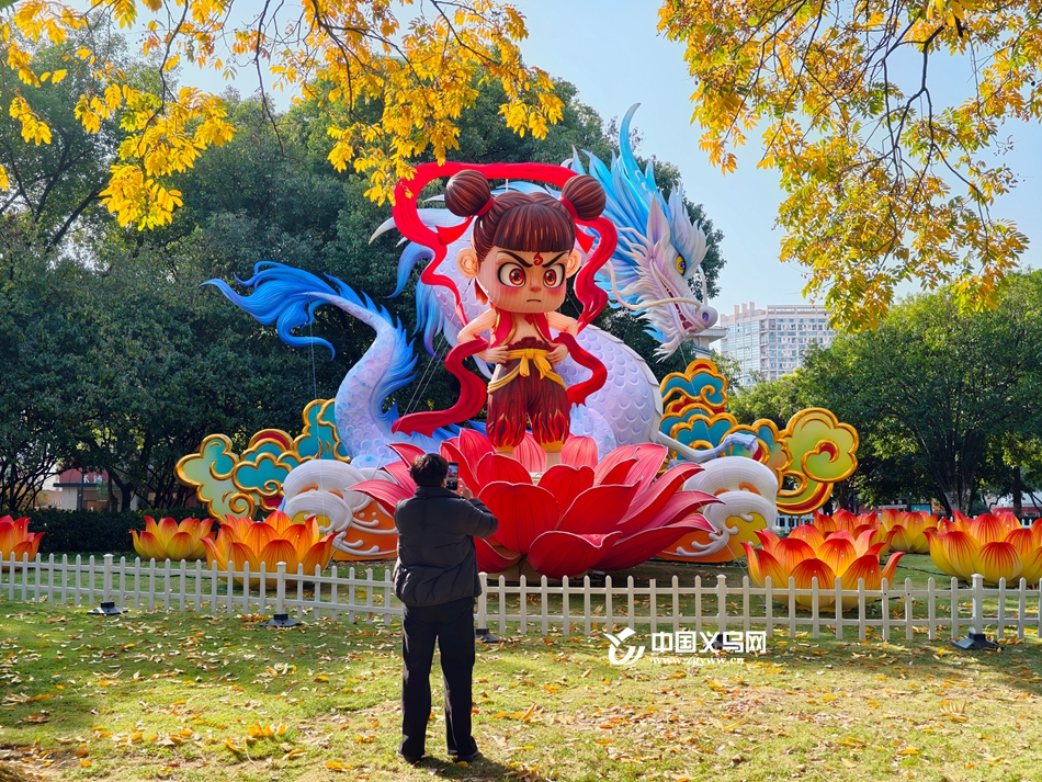 据悉,该灯组名为《马耀华章潮起新春》,将由四个镶嵌鎏金八骏图的大型拨浪鼓灯组环绕,寓意商通天下,两侧则设有鲲鹏化船的花灯造型,寓意义乌商贸扬帆出海。该灯组将与《有情有义世界义乌》《真理的味道》等一起作为绣湖广场的核心景点,成为游客打卡焦点。