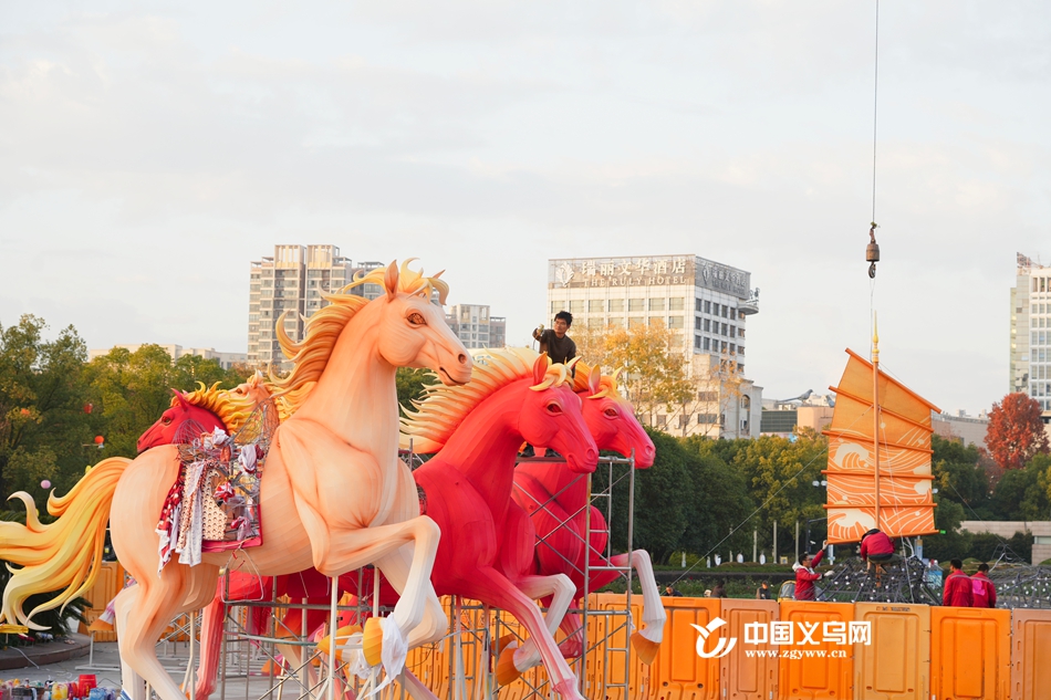 中国义乌网12月11日讯(记者 陈佳琪 编辑 童荟颖)连日来,义乌市绣湖广场与绣湖公园内一派繁忙景象,随着《家和岁韵福满商城》《策马奔腾盛世华章》两大主题花灯群的有序安装,2026年义乌绣湖灯会正式进入倒计时,将于本月20日华彩启幕,持续至2026年3月18日。