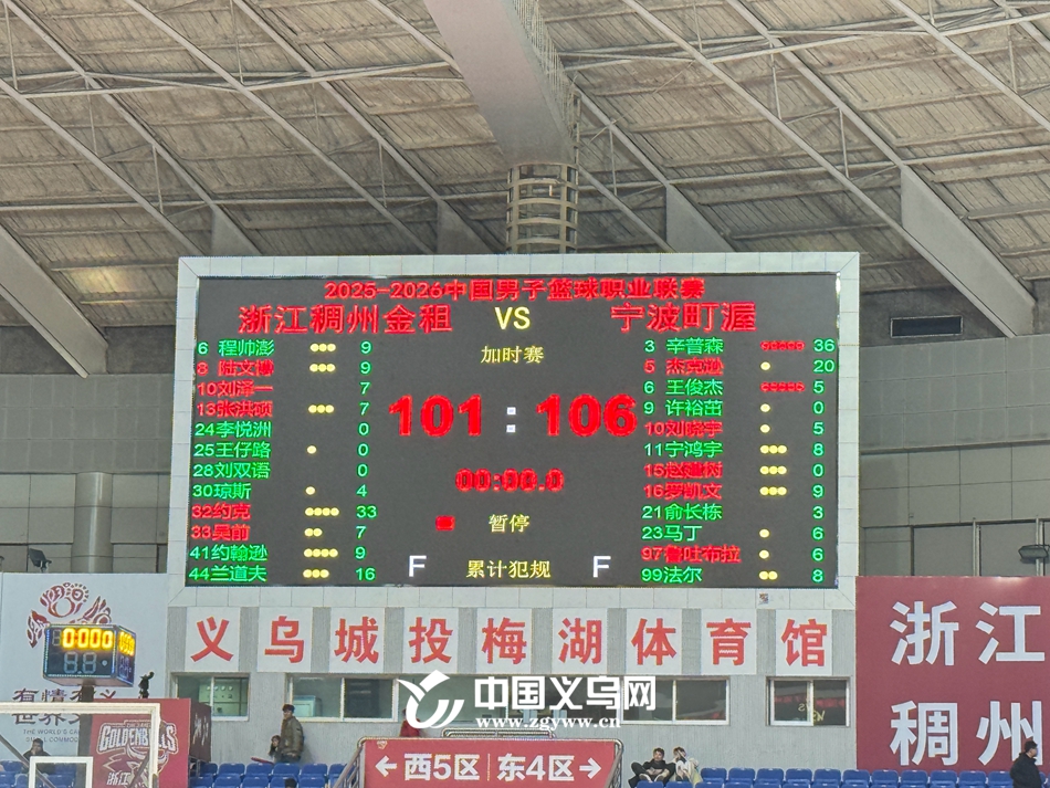 加时期间,浙江队的进攻稍显滞涩,最终以101:106不敌宁波,痛失开门红。