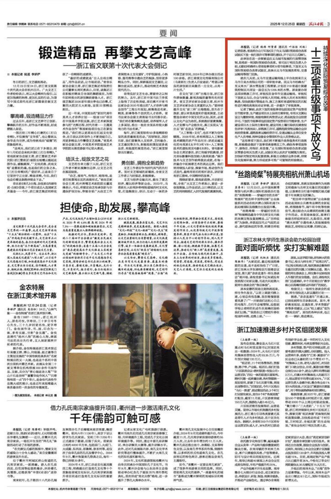 “这些事项下放后,我们将不断提升政务服务和行政效能,积极稳妥做好下放事项承接落实工作,确保各事项放得下、接得住、用得好、有监督。”义乌国际贸易综合改革试验区管委会相关负责人说,试验区将以此次扩权赋能为契机,加快研究制定相关配套措施,积极主动做好业务协调,持续优化发展环境,努力形成更多可推广可复制的经验做法。