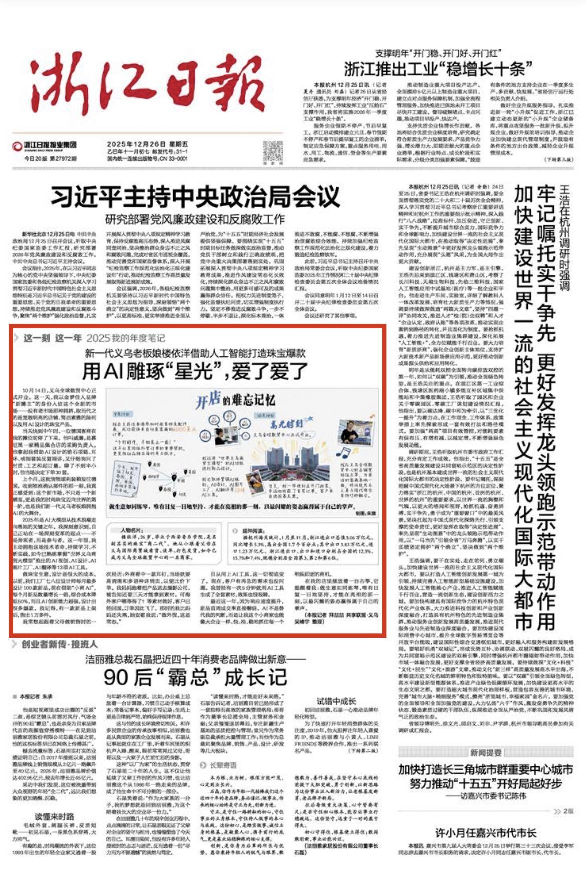 2025年12月26日《浙江日报》头版