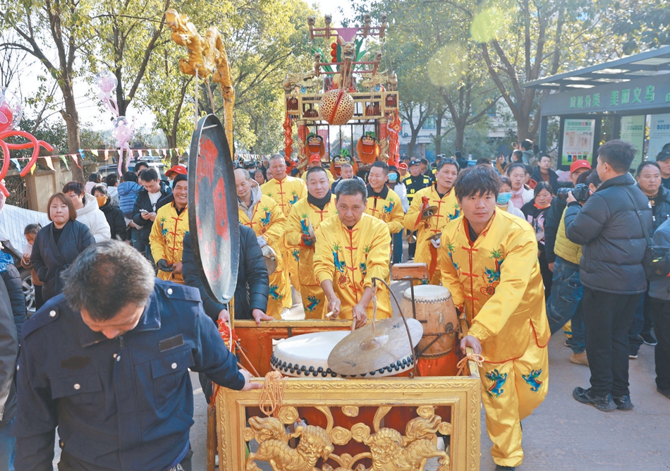 1月11日,义乌义亭镇白塔塘村第三届民俗文化节现场人流涌动,锣鼓声与欢笑声交织,人们沉浸在浓浓的喜庆氛围中。