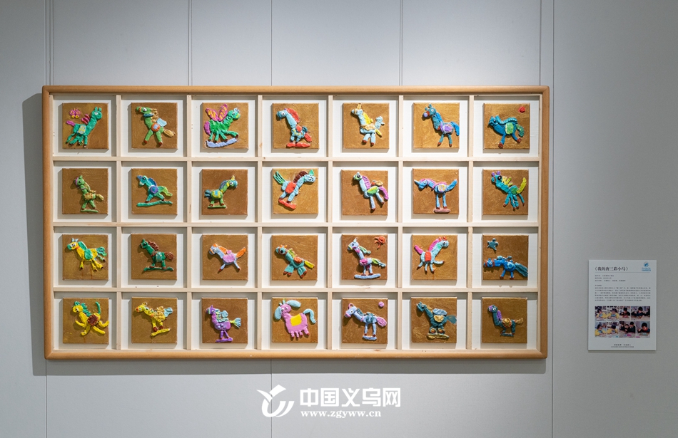 据悉,展览以马年生肖为核心,紧扣“骐骥驰骋,百语童心”主题,精心设置生肖雅韵·良驹逐梦、义城风华·童心绘春、万物造艺·多元表达三大板块。宋庆龄幼儿园的孩子们以画笔、黏土为创作载体,将童真创意融入作品,既勾勒出对马年生肖的独特理解,也描绘出对义乌的热爱与新春的美好期许。参展作品形式丰富多元,恢宏的集体装置艺术与灵动的个人创意小品相映成趣,淋漓尽致展现出孩子们天马行空的想象力与蓬勃的创造力。