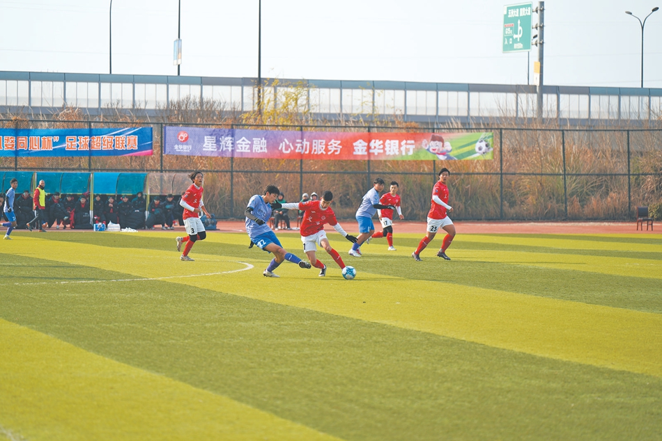 1月21日下午,2026金华市“八婺同心杯”足球超级联赛(以下简称:“金超”)循环赛第二轮,在中国计量大学现代科技学院足球场举行。世界义乌足球队迎来主场首秀,对阵金华开发区队。经过90分钟的激烈角逐,世界义乌足球队凭借上半场的两粒关键进球,以2:0的比分击败对手,成功斩获球队“金超”首胜。