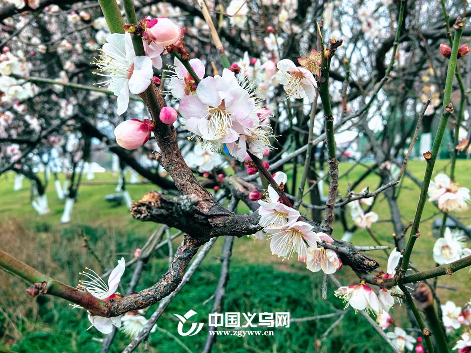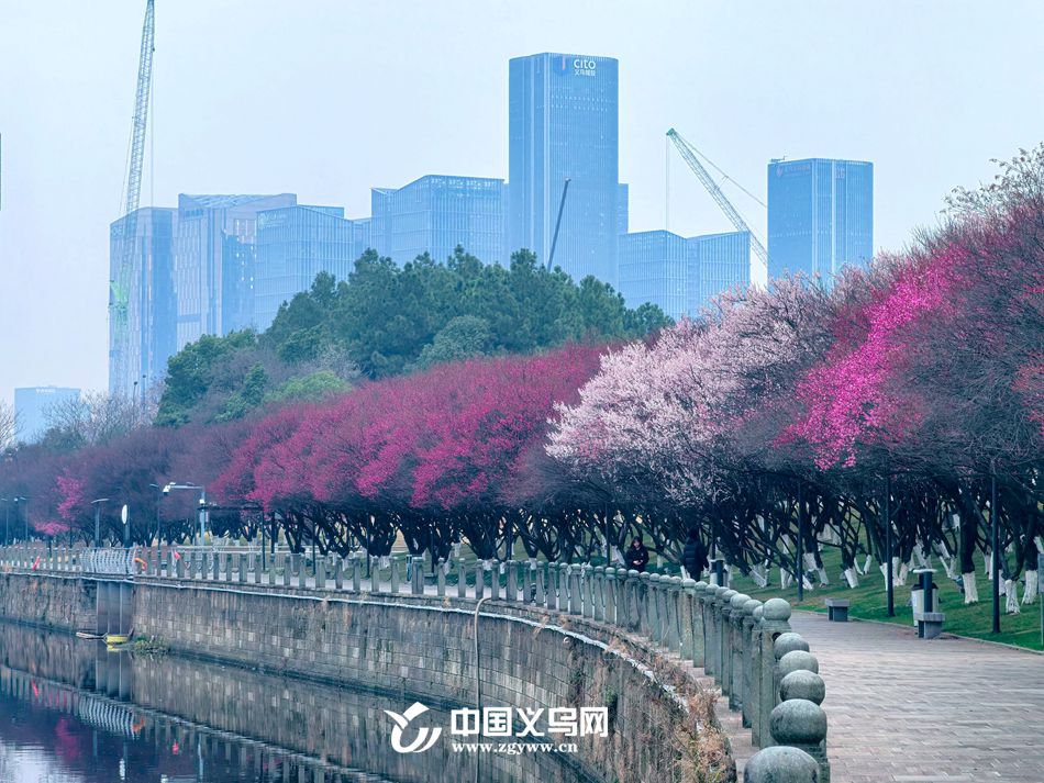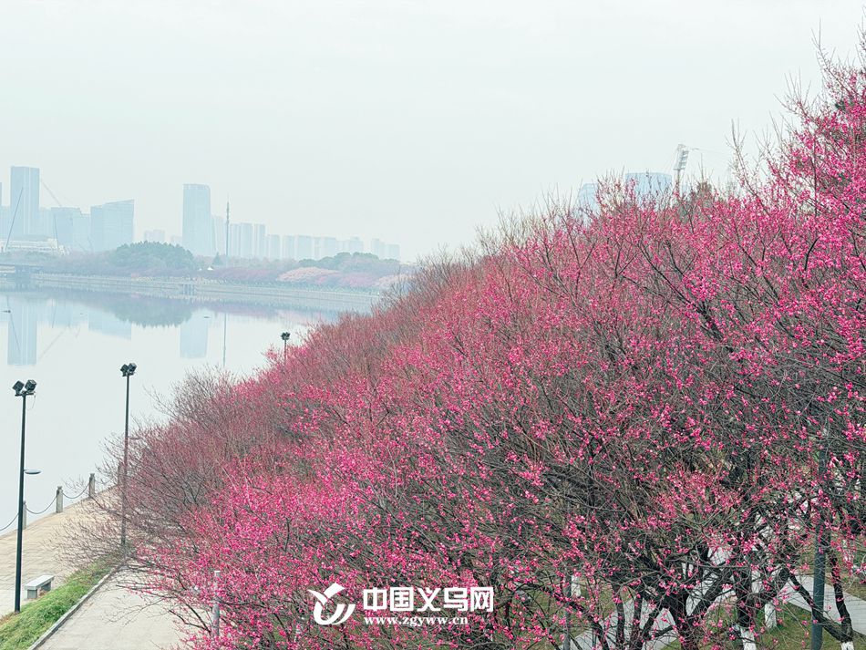 中国义乌网1月24日讯(记者 陈佳琪 编辑 童晓)近日,义乌江滨绿廊的梅花已悄然绽放,成为冬日里的亮丽风景。枝头梅花或含苞待放、或露蕊吐芬,淡粉、玫红交织错落,尽显雅致。