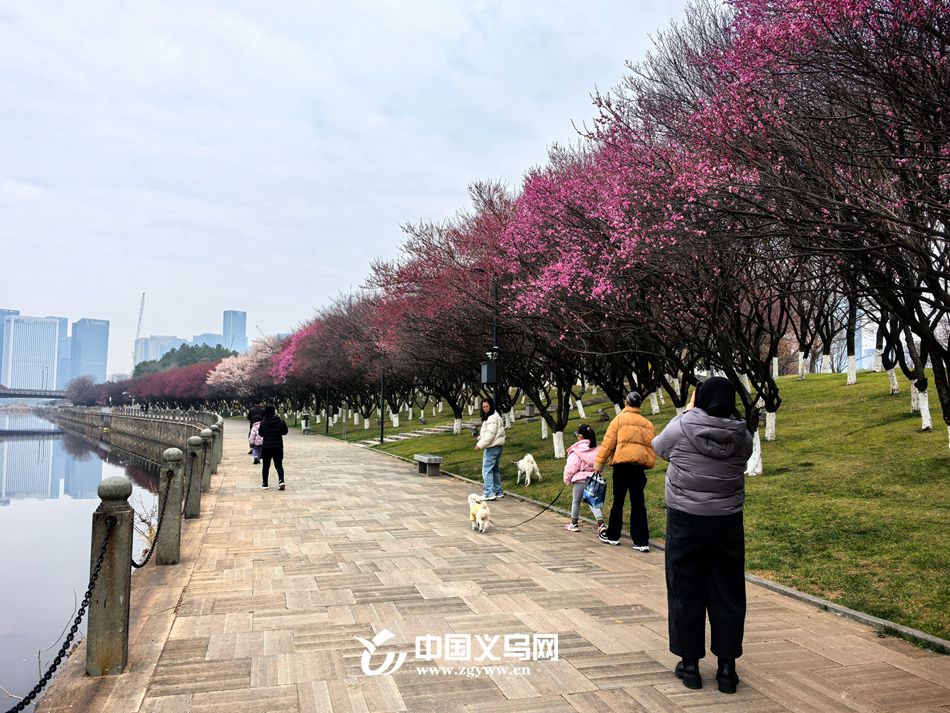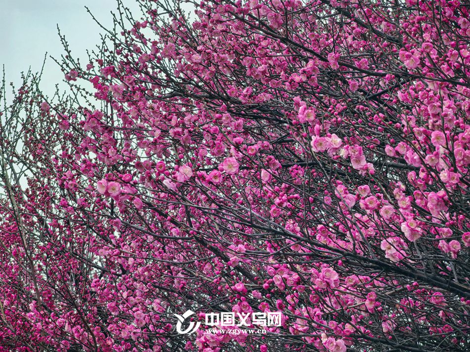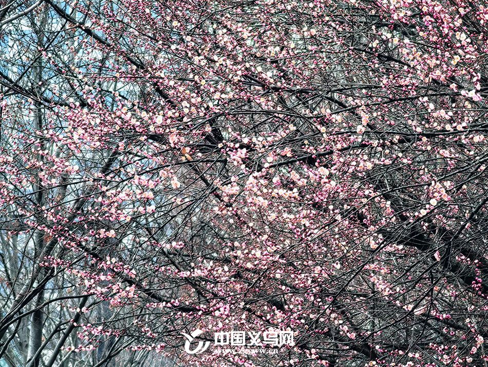 据悉,江滨绿廊与香雪报春园是义乌城区赏梅佳地,其中江滨绿廊的梅花林植有送春、美人梅、骨里红等10余个重瓣品种,再过几日将迎来盛花期,形成烂漫“梅花海”。目前义乌开得最盛的是早花品种粉红朱砂梅,美人梅、红梅也已次第初放;梅花对温度敏感,阳光充沛处的花枝开得更为艳丽。