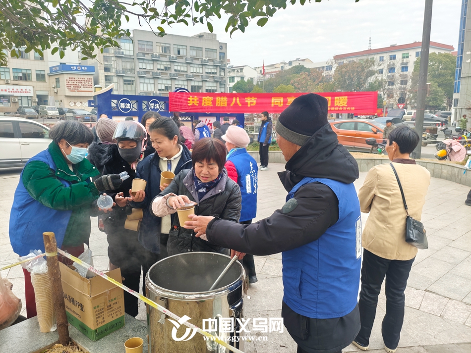 中国义乌网1月26日讯(记者 陈珊珊 编辑 童晓)过了腊八就是年。一碗腊八粥,氤氲着千年的民俗烟火,也拉开了新春序曲的温暖帷幕。为弘扬中华优秀传统文化,进一步营造喜庆祥和的节日氛围,1月26日,义乌后宅街道在净居路小广场举办“共度腊八节同享人间暖”主题活动,为辖区群众送上一份暖心的节日祝福。