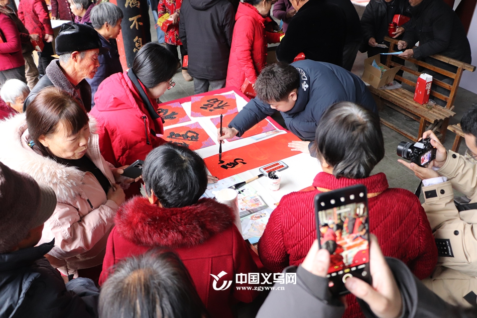 中国义乌网1月29日讯(记者 陈佳琪 编辑 童荟颖)1月29日下午,义乌市赤岸镇南青口村热闹非凡,人保财险义乌支公司将老年人意外保险政策宣传与写春联送祝福活动相结合,把惠民保障与新春暖意送到村民家门口,用贴心服务守护农村老年群体的幸福晚年。