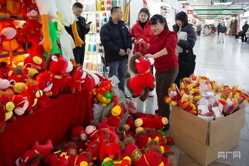 当前在义乌国际商贸城,各类马年主题玩偶持续走俏,与“马”在中国文化中所承载的美好寓意密切相关。“比如‘马上成功’‘马上有钱’等。”义乌国际商贸城内一家长期专营“红色生肖”系列毛绒玩具商铺的店主虞女士告诉记者,店铺针对马年,提前开发出仿真、卡通等类别在内的约50款“马”系列毛绒玩具。