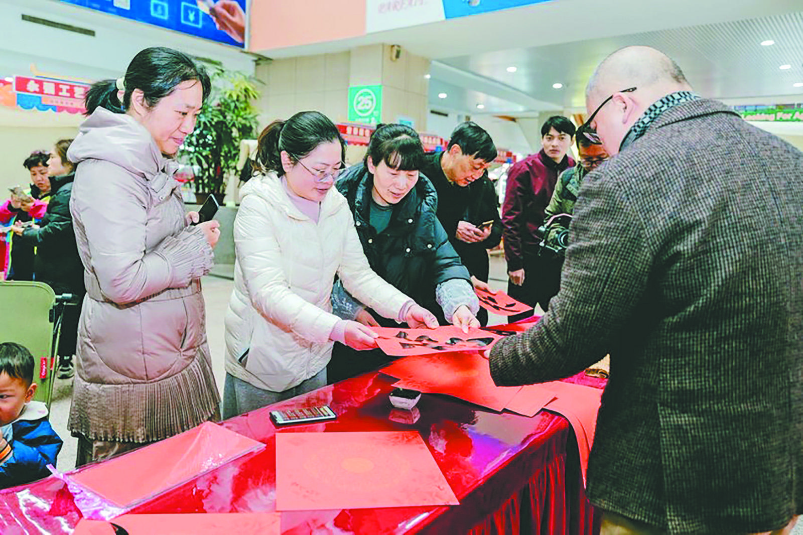 感受年味不止于购物。在“马年迎新·沾沾喜庆”环节,50名身着传统服饰的“福娃”手提自制小马灯,在市场内巡游送福,向商户和顾客派发中国结、福字贴等吉祥物;市书法家协会的多位老师现场挥毫,免费书写春联赠予市民,墨香与年味交织,氛围热烈。