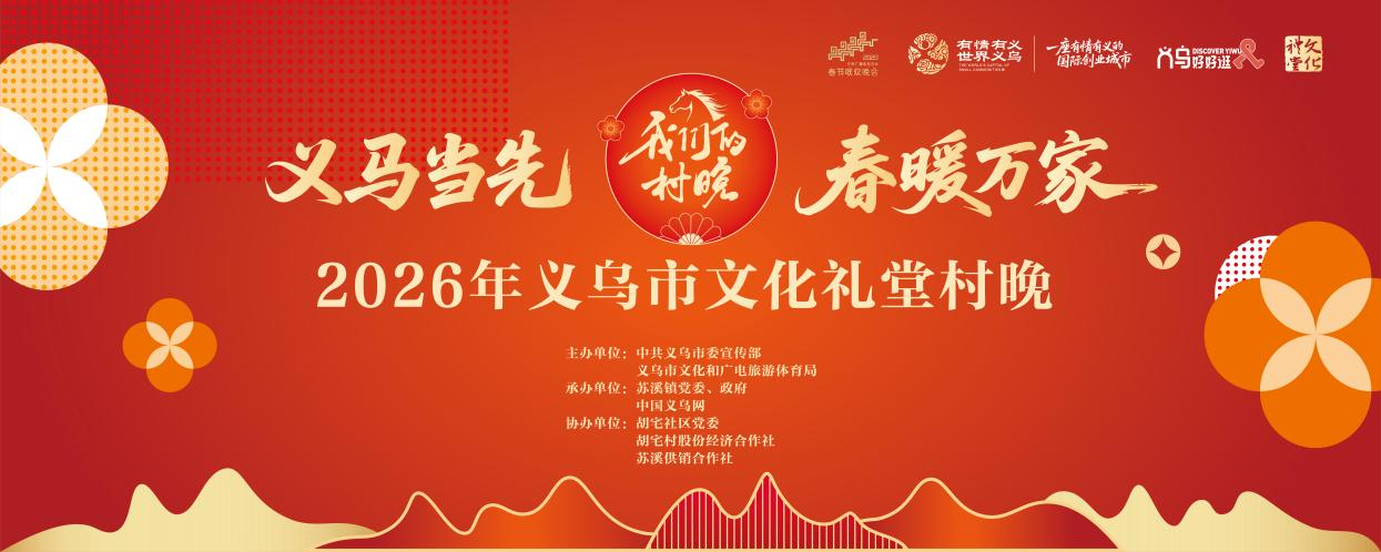 2月9日的启幕活动由中共义乌市委宣传部、义乌市文化和广电旅游体育局主办,苏溪镇党委、政府与中国义乌网联合承办,胡宅社区党委、胡宅村股份经济合作社协办,旨在打造一场立足苏溪、辐射全市的新春文化盛宴。