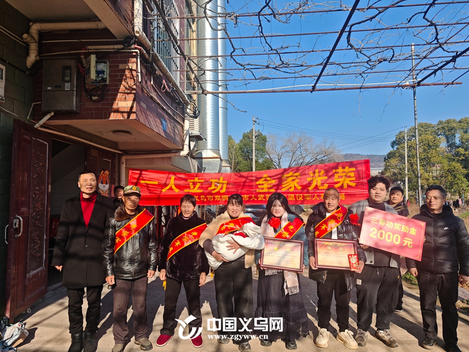 中国义乌网2月9日讯(记者 陈珊珊 编辑 童晓)2月9日上午,义乌后宅街道西关田村锣鼓喧天、格外热闹。后宅街道退役军人服务站工作人员带着满载荣誉的喜报,来到在役军人傅泽宇家中,为其家属送上“四有”优秀士兵表彰及三等功喜报,把党和政府的关怀与温暖送到军属心上。