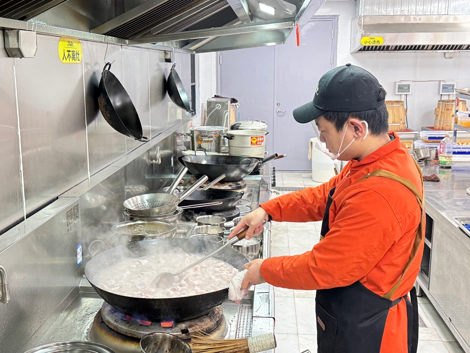 金祎浩是义乌大陈幸福食堂的店长。临近春节,周边务工的就餐人员减少,他本应给大家伙儿发布“放假通知”。但今年不同,他提出春节不打烊,坚持为全镇年长、独居或行动不便的老人送餐,想法提出后得到了积极响应,也就有了店内“门可罗雀”但后厨依然热火朝天的忙碌景象。