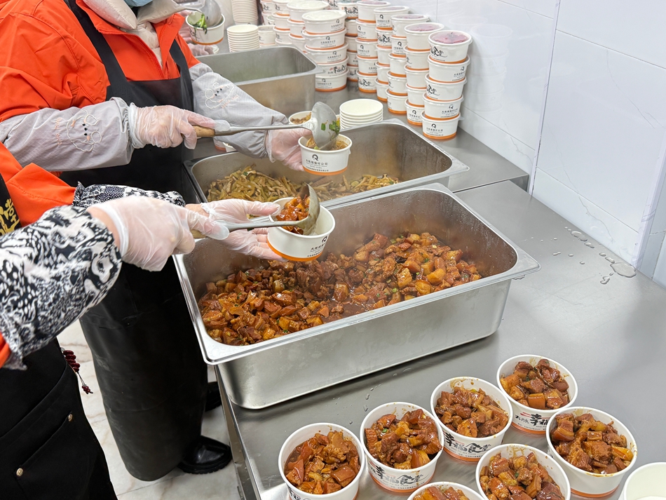 “春节期间,我们考虑到一些年事已高、独居、无子女或者子女也无赡养能力的老人,他们的用餐是个大问题。便告知他们可以跟我们申请春节也送餐,假如家里突然有客人来,还可以联系我们加菜。”金祎浩特别提到,春节期间老人的餐标与平时一样,根据不同年龄定价为2到6元一顿,加餐的超支费用均由门店对外经营的收入承担。